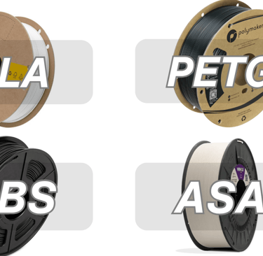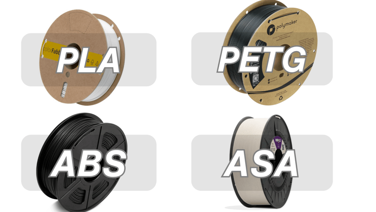 We use a variety of materials including PLA, PETG, ABS, and ASA in many colors for durability.